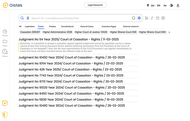 The Qistas Legal Research Platform lies at the core of our intelligent ecosystem, offering a comprehensive database of legislative and judicial content from 9 Arab jurisdictions. Powered by advanced search, analysis, and cross-referencing technologies, it has become the trusted reference for legal professionals, firms, and institutions across the region.